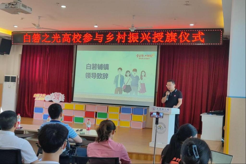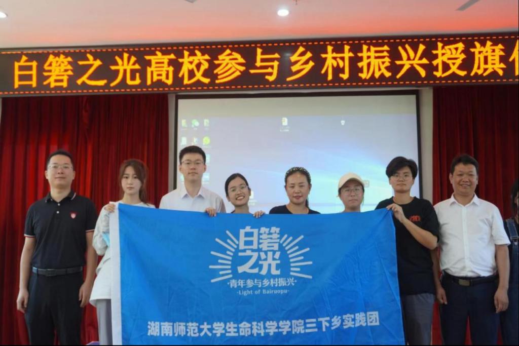 (通讯员 桑鲁京)2022年7月10日上午,湖南省长沙市望城区白箬铺镇白箬之光乡创中心向生科院“青春下乡”赴长沙市望城区白箬铺镇胜和村暑期社会实践团举办授旗仪式。白箬铺镇镇长党委书记胡宇波、白箬铺镇副镇长团委书记李凯出席此次活动。yL23411永利集团官网登录、湖南中医药大学、长沙理工大学参与此次白箬之光高校参与乡村振兴授旗仪式