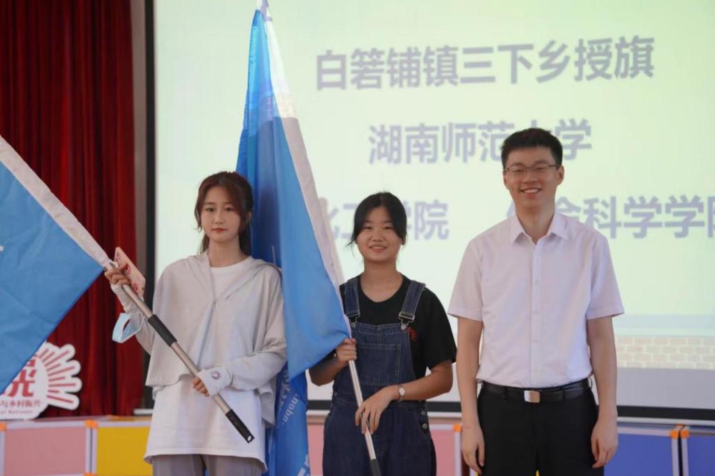 白箬铺镇镇长党委书记胡宇波向生科院“青春下乡”暑期实践团队进行授旗并表达热烈欢迎与美好祝愿。