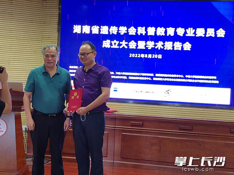 湖南省遗传学会科普教育专业委员会主任委员接受聘书